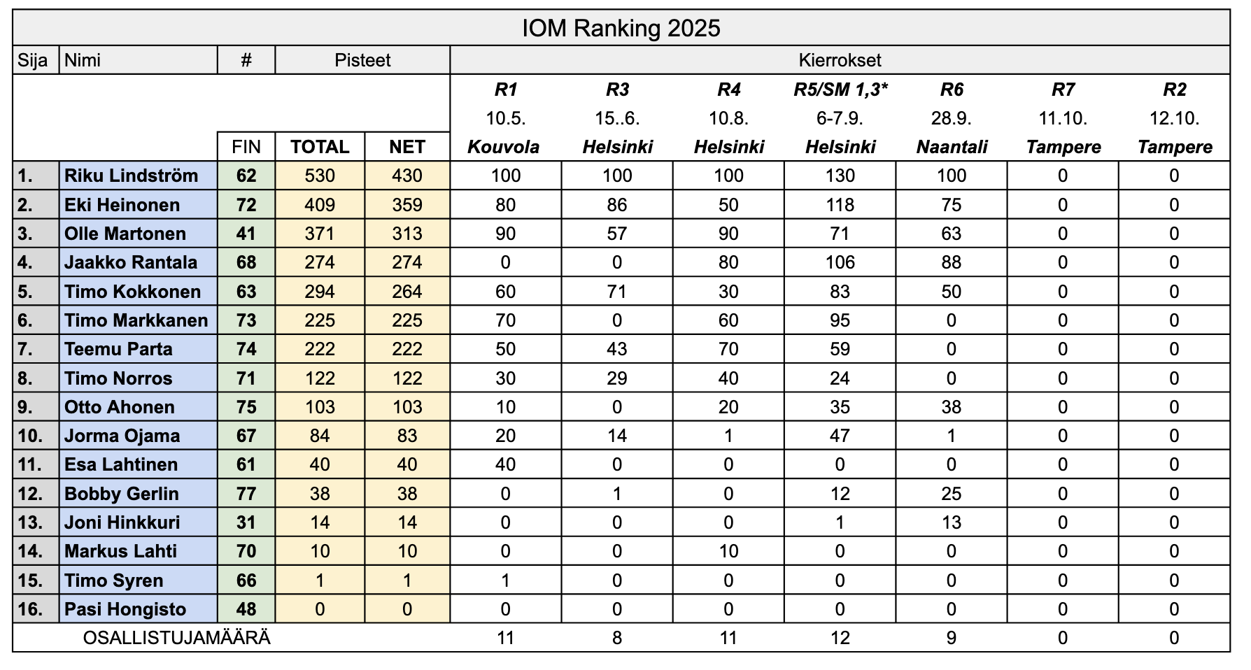 Jos Naantalissa oli haastavat olosuhteet niin Tampereella oli ehkä vielä vaikeampaa. Tuulen voimakkuus vaihteli välillä 0-15m/s ja suuntakin ainakin 45 astetta vähän väliä. B-rikillä mentiin koko päivä ja huomiselle R2 kisalle luvassa on ilmeisesti vielä kovempaa tuulta, tosin paremmasta suunnasta joten saattaa olla tasaisempaa menoa.
